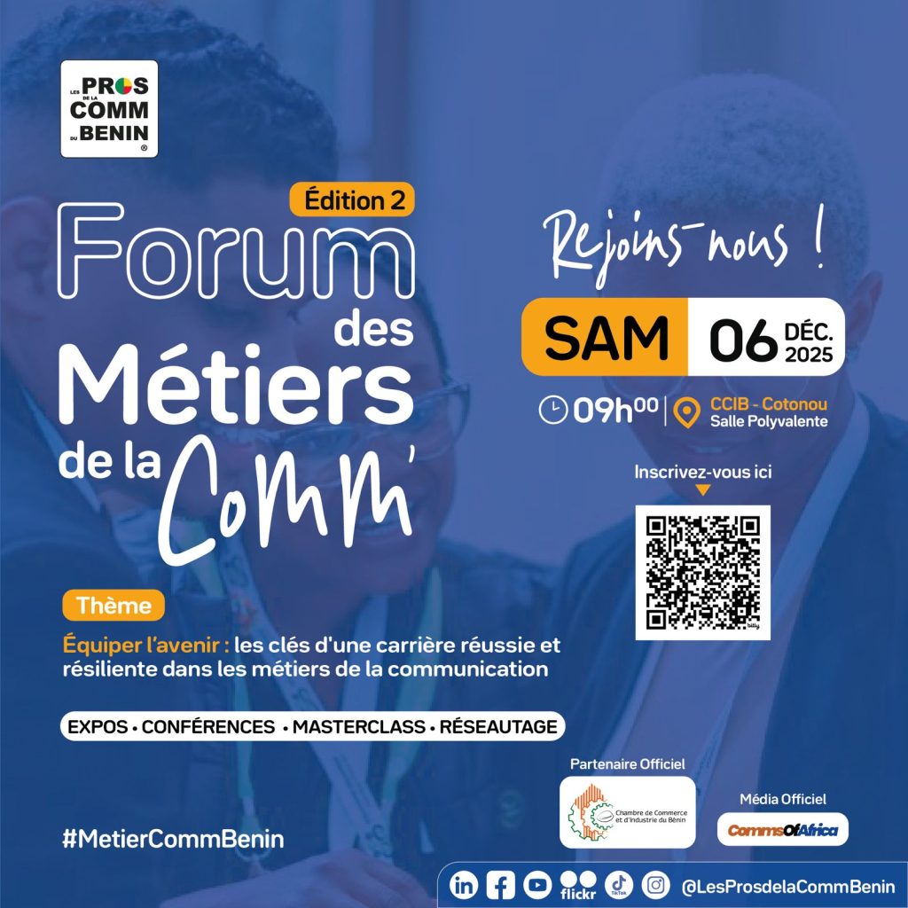 Après une première édition unanimement saluée, le Forum des Métiers de la Communication signe son grand retour. L’événement, prévu pour le samedi 6 décembre 2025 à la CCI Bénin, promet de rassembler plus de 200 participants autour d’un programme centré sur l’employabilité, la durabilité et les opportunités professionnelles dans un secteur en pleine mutation. une initiative des » Pros de la Com du Bénin ».